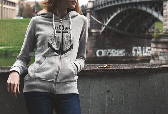 The freebie of the day is a photo-realistic mock-up that will help you preview how your apparel design will look like printed on a hoodie. The PSD file allows you to change the color of the garment and place your design via smart objects so that it will blend with the folds and creases of the hoodie.
