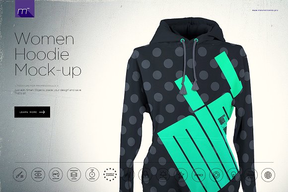 Premium quality, based on professional photos hoodie mock-ups. These are perfect if you are making a catalog or building a website to display hoodie fleece designs, you can also use it in your branding projects or anywhere you like. All images are in high resolution that makes this mock-up perfect for print or web projects, landscape proportions gives you additional freedom of cropping and framing. You can also easily edit the hoodie, laces, zip colors and use thesmart layer to apply your designs. Background color and brightness is also editable, you can even place one of the included background textures or use any background you want. Presentation never looked so perfect.