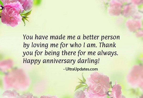 - You have made me a better person by loving me for who I am. Thank you for being there for me always. Happy anniversary darling!