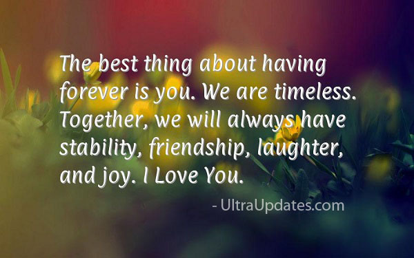 - The best thing about having forever is you. We are timeless. Together, we will always have stability, friendship, laughter, and joy. I love you.