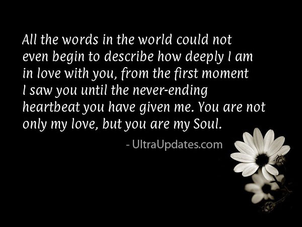 - All the words in the world could not even begin to describe how deeply I am in love with you, from the first moment I saw you until the never-ending heartbeat you have given me. You are not only my love, but you are my soul.
