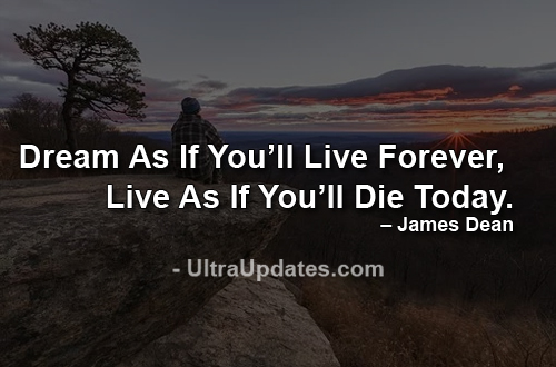- Dream as if you’ll live forever, live as if you’ll die today. – James Dean