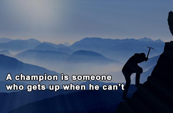 - A champion is someone who gets up when he can’t