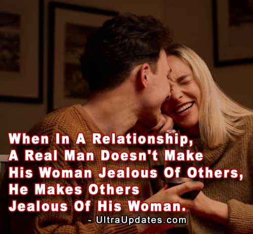 - When in a relationship, a real man doesn’t make his woman jealous of others, he makes others jealous of his woman.