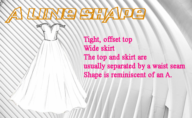 Due to the flared shape, the cut is reminiscent of a capital “A”, which is what gives the dress shape its name.