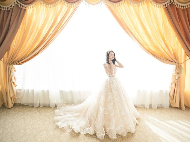 Big breasts, round hips, and a narrow waist? Then you have an hourglass figure type. The special thing about it is you can wear almost anything. In any case, you should put your narrow waistline in the limelight with your wedding dress. The mermaid wedding dress or the trumpet shape looks great on you.