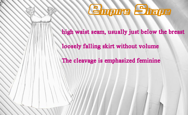 The empire dress suits almost all figure types, only women with a strong upper body should choose a different dress style, as the cleavage and breast are additionally emphasized with this cut. This can quickly look lush with O-figure wedding dress types.