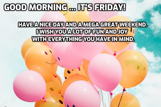 - Good Morning! Juhu, it’s finally Friday. Enjoy the day and have a good weekend. Very dear Friday greetings from me.