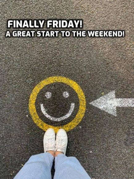 - Smile, it’s Friday! The weekend is here to reward you for your hard work.