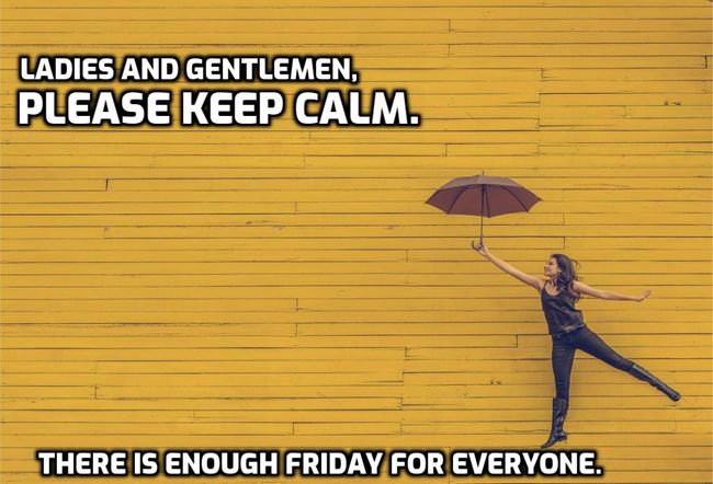 - Ladies and gentlemen, please keep calm. Finally Friday!