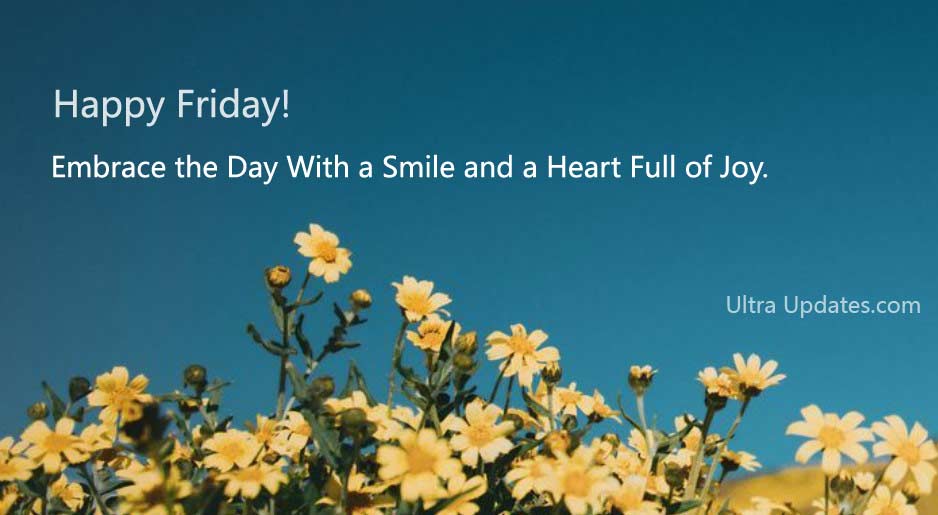 - Happy Friday! Embrace the day with a smile and a heart full of joy.