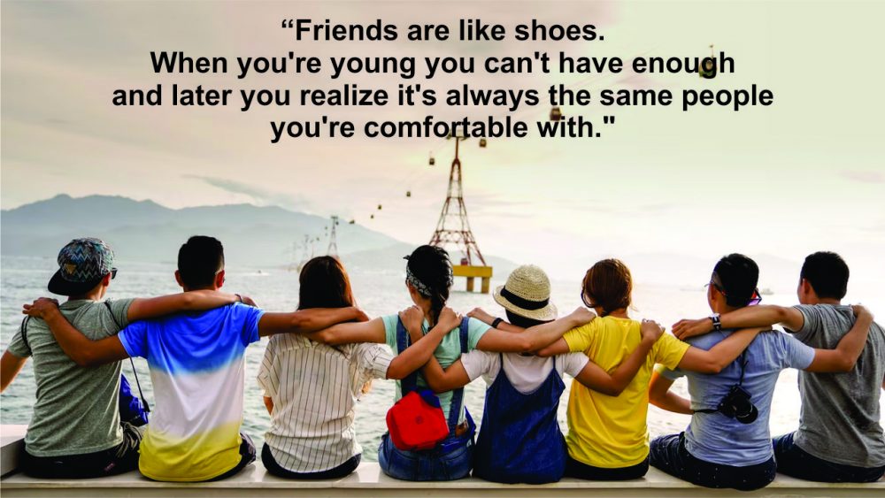 - “Friends are like shoes. When you’re young you can’t have enough and later you realize it’s always the same people you’re comfortable with.”