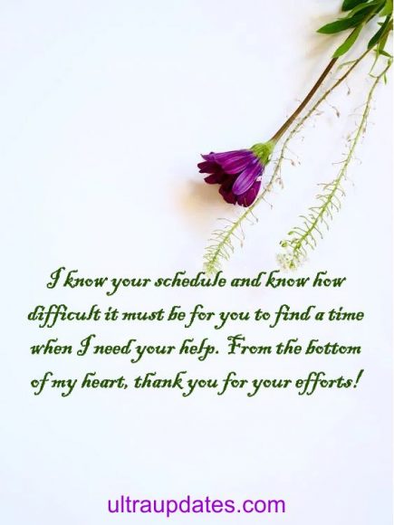 - I know your schedule and know how difficult it must be for you to find a time when I need your help. From the bottom of my heart, thank you for your efforts!