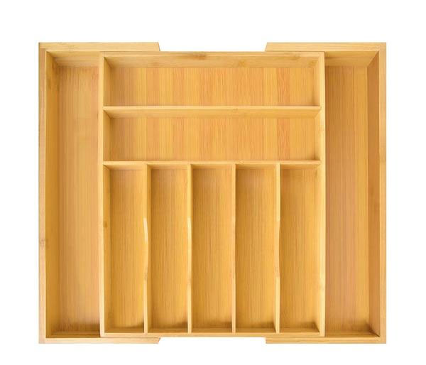 Quickly and easily organize all your kitchen tools with our bamboo drawer organizer. The adjustable slots make it the perfect storage solution for silverware, serving ware or even utensils! With deep 2″ thick sections that expand up to 9 spaces depending on how much space you need – this eco-friendly product will fit any needs from 7 section minimums right through 20″.