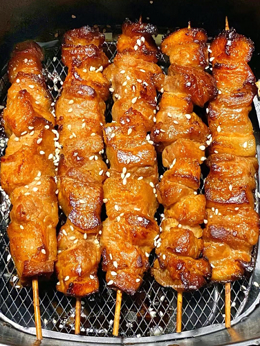 Also, a basket-style air fryer that comes with grilling accessories is ideal. Look for something that comes with a grill plate or grates and skewers. Additionally, the basket design should make it easy for the drippings to flow away from the food.