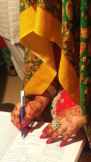 - The bride and groom sign the Nikah-Namah, a Muslim marriage contract, in front of their guests. During the wedding ceremony, the contract is read out in Arabic and is also signed at this time. The couple is formally wedded at this point in the ceremony after certain passages from the Quran are recited during a brief sermon.