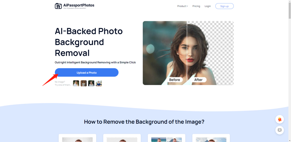 AiPassportPhotos is one of the best AI background remover to remove the background from an image without Photoshop. It comes with AI support offering outright intelligent background removal with just one click.