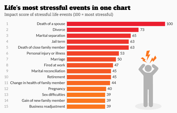 For example, the statistics below show that divorce is the second most stressful event in a person’s life: