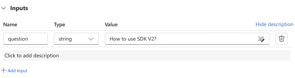 Step 5. Type your question or use an embedding. If it’s an embedding, ensure it’s defined in the input section of your prompt flow.