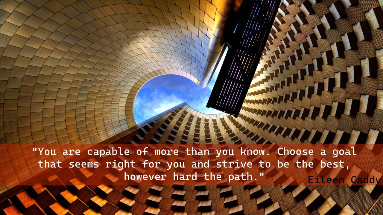 - “You are capable of more than you know. Choose a goal that seems right for you and strive to be the best, however hard the path.” – Eileen Caddy