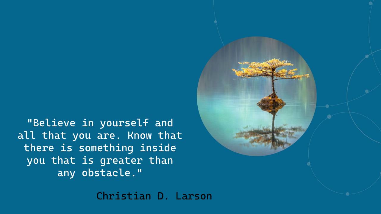 - “Believe in yourself and all that you are. Know that there is something inside you that is greater than any obstacle.” – Christian D. Larson.