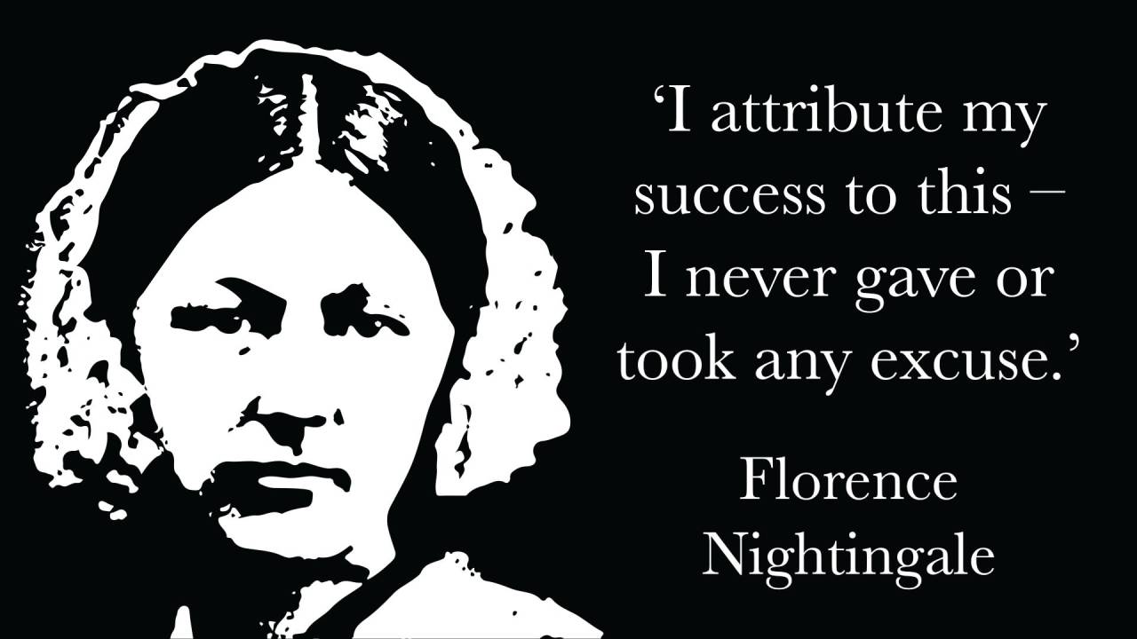 - “I attribute my success to this: I never gave or took any excuse.” – Florence Nightingale