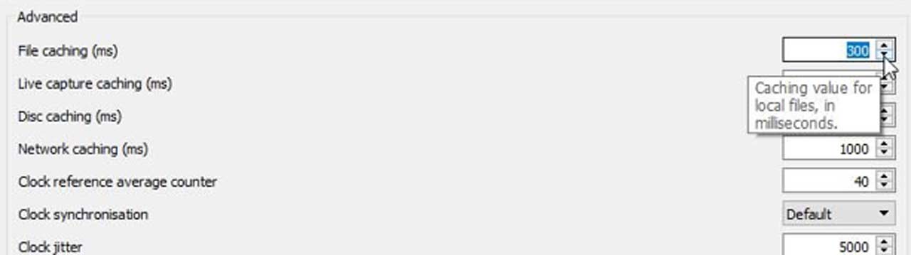 - In the Advanced window, increase the value next to File caching (ms) from 300 to 1000 or above.