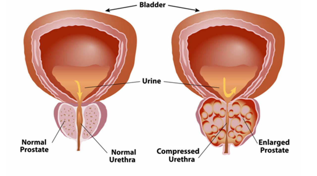 BPH leads to urinary retention. This is when it is punitively difficult to urinate at all, causing pain or a sensation of bloating within the bladder.