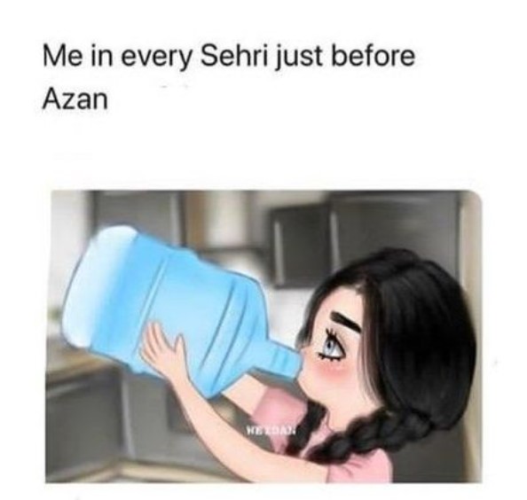 Here’s a popular one: “The first sip of water at iftar is the closest thing to a five-star luxury experience!”