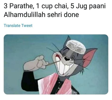 3 Parathe, 1 cup chai, 5 jug pani Allhamdulillah sehri done.