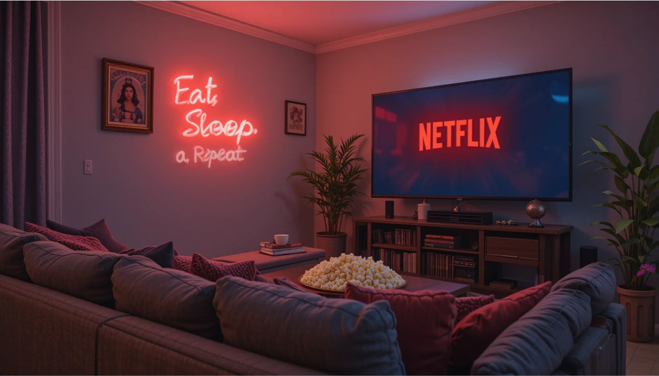 “Eat, Sleep, Netflix, Repeat” – A dream sign for binge-watchers! Place it near your couch for the ultimate cozy vibe.