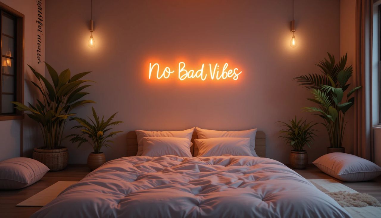 “No Bad Vibes” – Spread good energy with this sign! It’s perfect for yoga studios, bedrooms, or chill-out spaces.