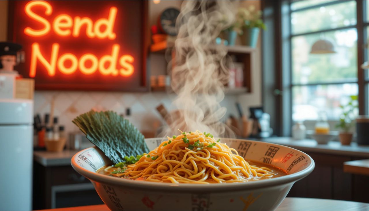 “Send Noods” – A playful, food-inspired sign for ramen lovers. Great for restaurants or a fun kitchen setup.