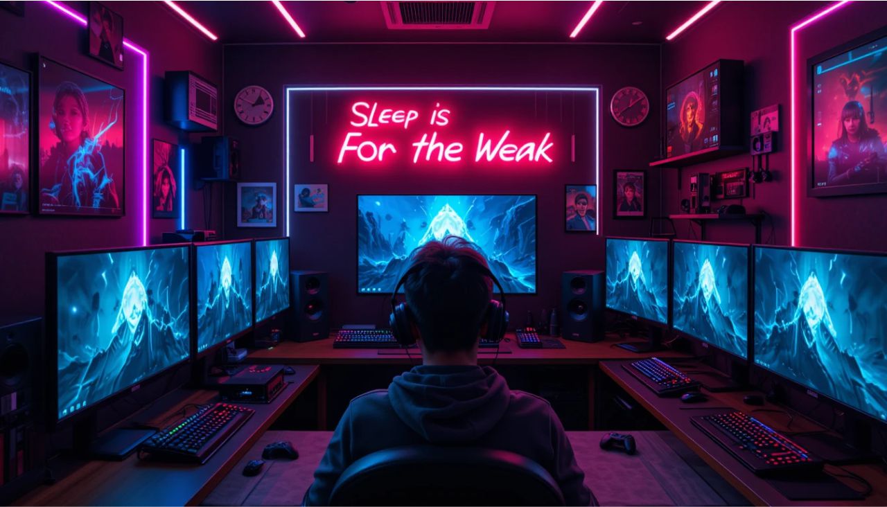 A bedroom sign like “Sleep is for the Weak” adds humor to late-night scrolling. Gamers will love a bold neon quote in their game room for an extra cool touch.