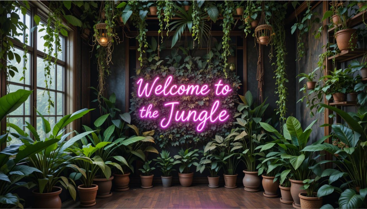 “Welcome to the Jungle” – Perfect for plant lovers! Pair it with greenery for a fresh, funky aesthetic.